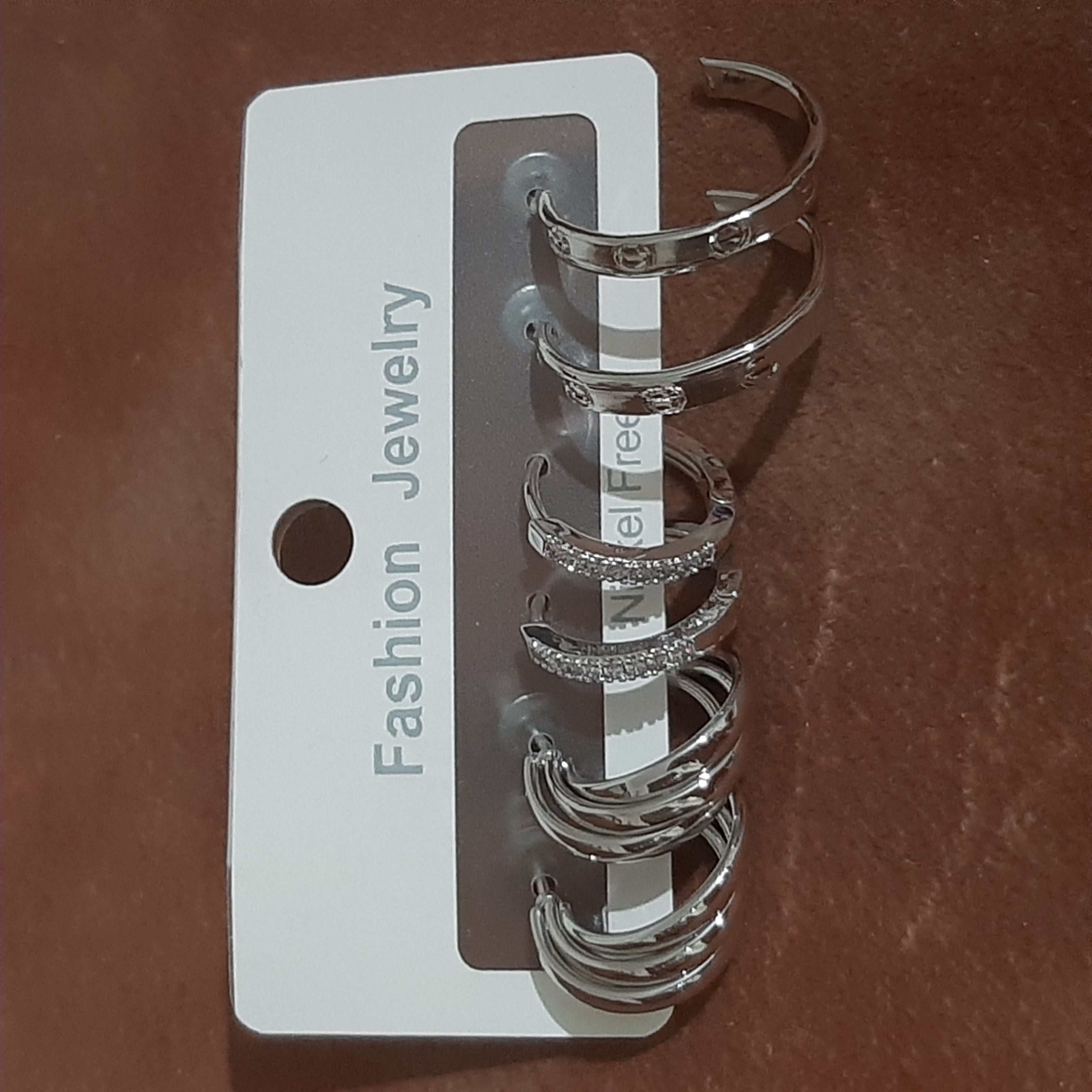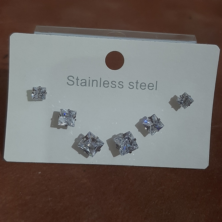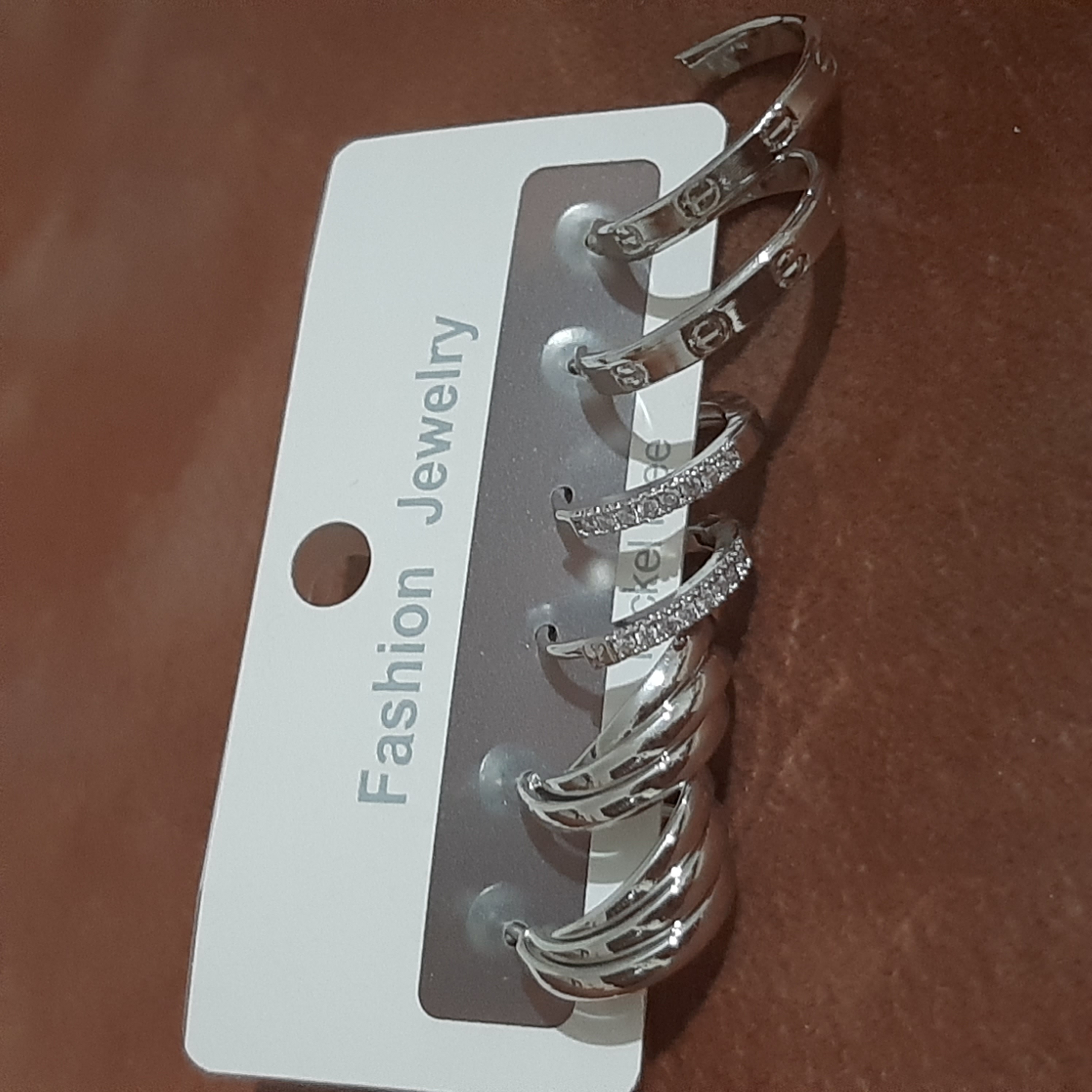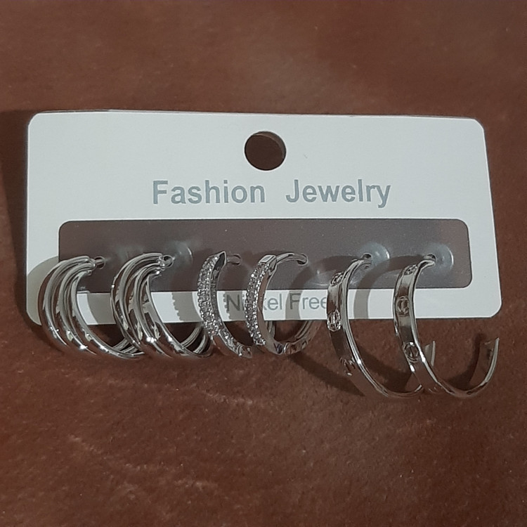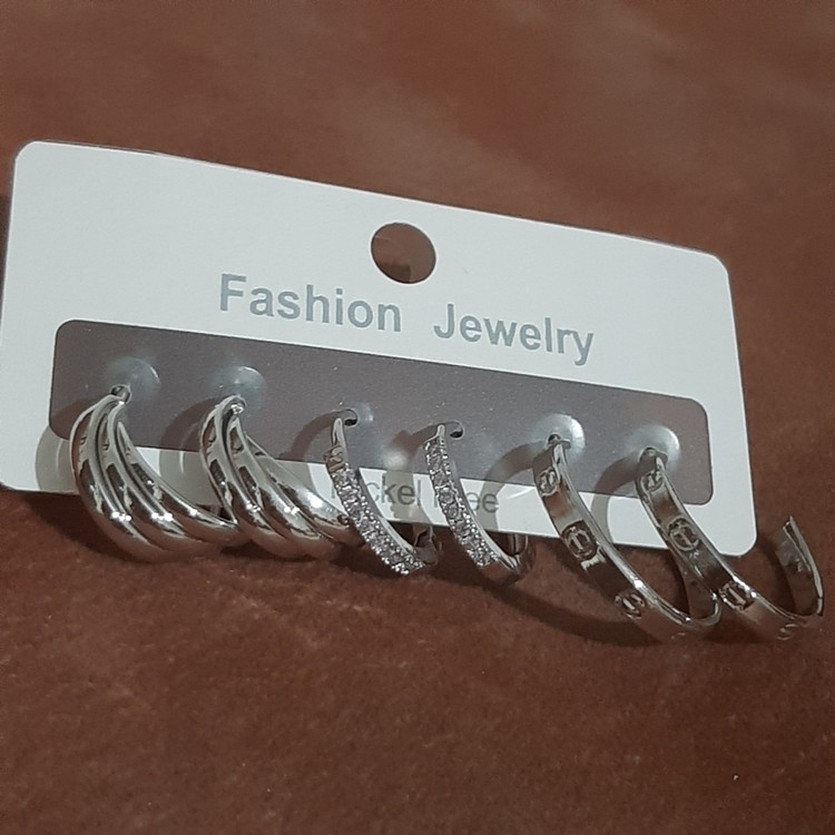 پک گوشواره سه تایی حلقه ای در تنوع و طرح های زیبا ، پک گوشواره سه تایی نگین دار لوزی و مربع